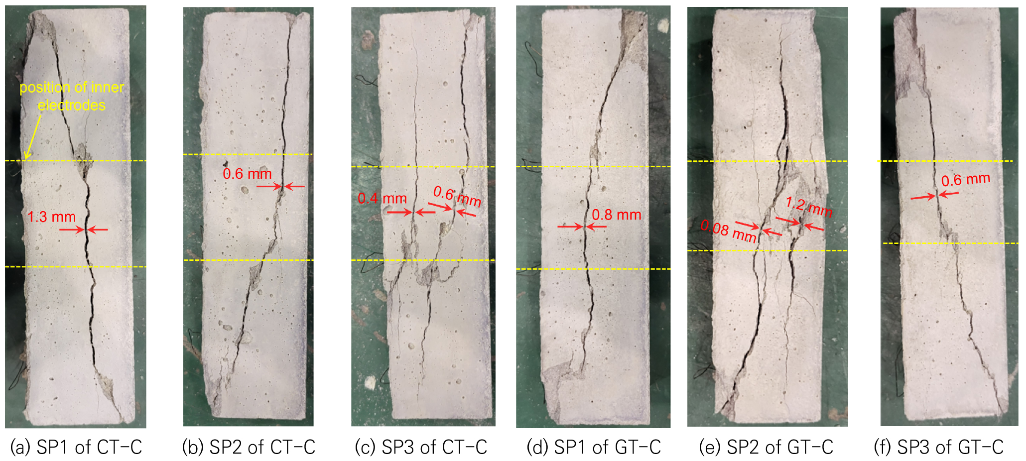 - In this study, the electromechanical behavior of textile reinforced cementitious composites (TRCCs) reinforced by carbon and glass textiles (CT and GT) under uniaxial tension and compression was investigated using DC multimeter, aiming to develop an efficient strengthening and structural health monitoring technology for deteriorated concrete structures. Under tension, the fractional change in electrical resistivity (FCR) of the tensile specimens reinforced by CT (CT-T) varied significantly, ranging from –3.35 % to –94.47 % at the first-cracking point, and from –57.1 % to 15.33 % at the post-cracking point. These variations are attributed to the discontinuous changes in conductive pathways caused by the combined effects of telescopic pullout of carbon filaments, interfacial shear slip, and bridging effect of the textile as the tensile strain increased. Under compression, the FCR of CT specimens (CT-C) at failure (93.53 % to 475.00 %) also exhibited highly irregular behavior due to unstable fluctuations in the conductive network, resulting from local buckling and shear deformation of the filaments within the textile. In contrast, the specimens reinforced by GT (GT-T) showed a sharp increase in electrical resistivity only at failure under tension, as the glass textile had little influence on the conductive network within the matrix. In all cases, the electromechanical behavior of the specimens showed relatively consistent trends in response to external loading. The experimental results confirmed that the electromechanical behavior of TRCCs is significantly influenced by the electrical conductivity and interfacial behavior of the embedded textile, and that CTs are suitable for use as self-sensing materials. Moreover, further analysis of the electromechanical behavior of TRCCs is expected to enable identification of textile–matrix failure modes under external loading conditions.