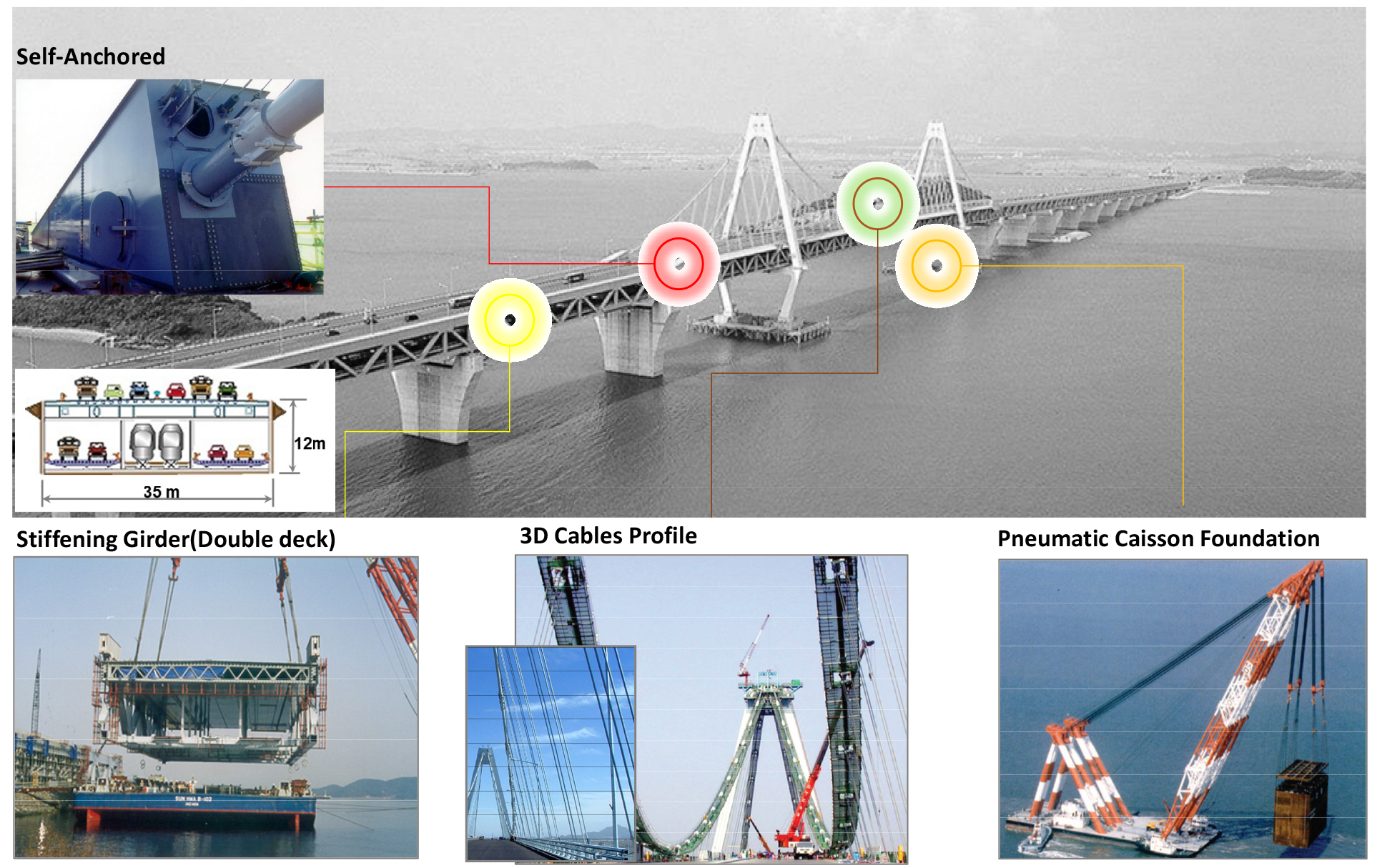 - The Yeongjong bridge is a three-dimensional self-anchored suspension bridge that carries both roadway and railway traffic, characterized by its unique structural features. …